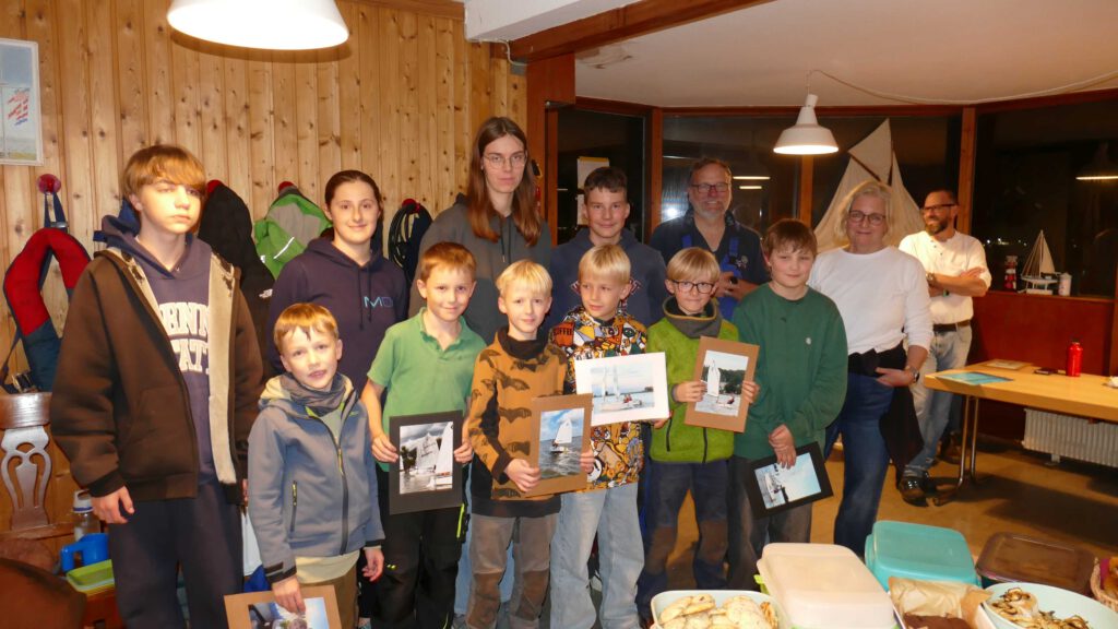 Auch die Halbmodelle wurden vergeben. Sie werden an die Kinder gegeben, die in der Saison den größten seglerischen Fortschritt gemacht haben. In der Gruppe C1 war das Lisa von Krahn aus dem SCU, die leider an dem Abend nicht selbst dabei sein konnte. In der Gruppe C2 hat Nomie Reimers aus dem SCOe das Halbmodell ersegelt und in der Gruppe B Matteo Laversanne aus dem SCU.