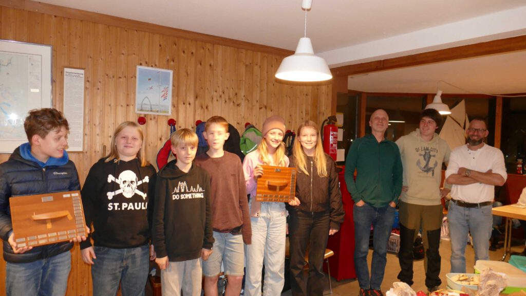 Eine Woche zuvor hatte Uli Kade netterweise die praktische Prüfung zum Jugendsegelschein (ehemals Jüngstenschein) abgenommen. So konnte der Jugendsegelschein an Lasse Boxberger und Konrad Hachmeier aus dem SCU sowie an Nomie Reimers, Henriette Eschen und Pauline Peters aus dem SCOe überreicht werden.