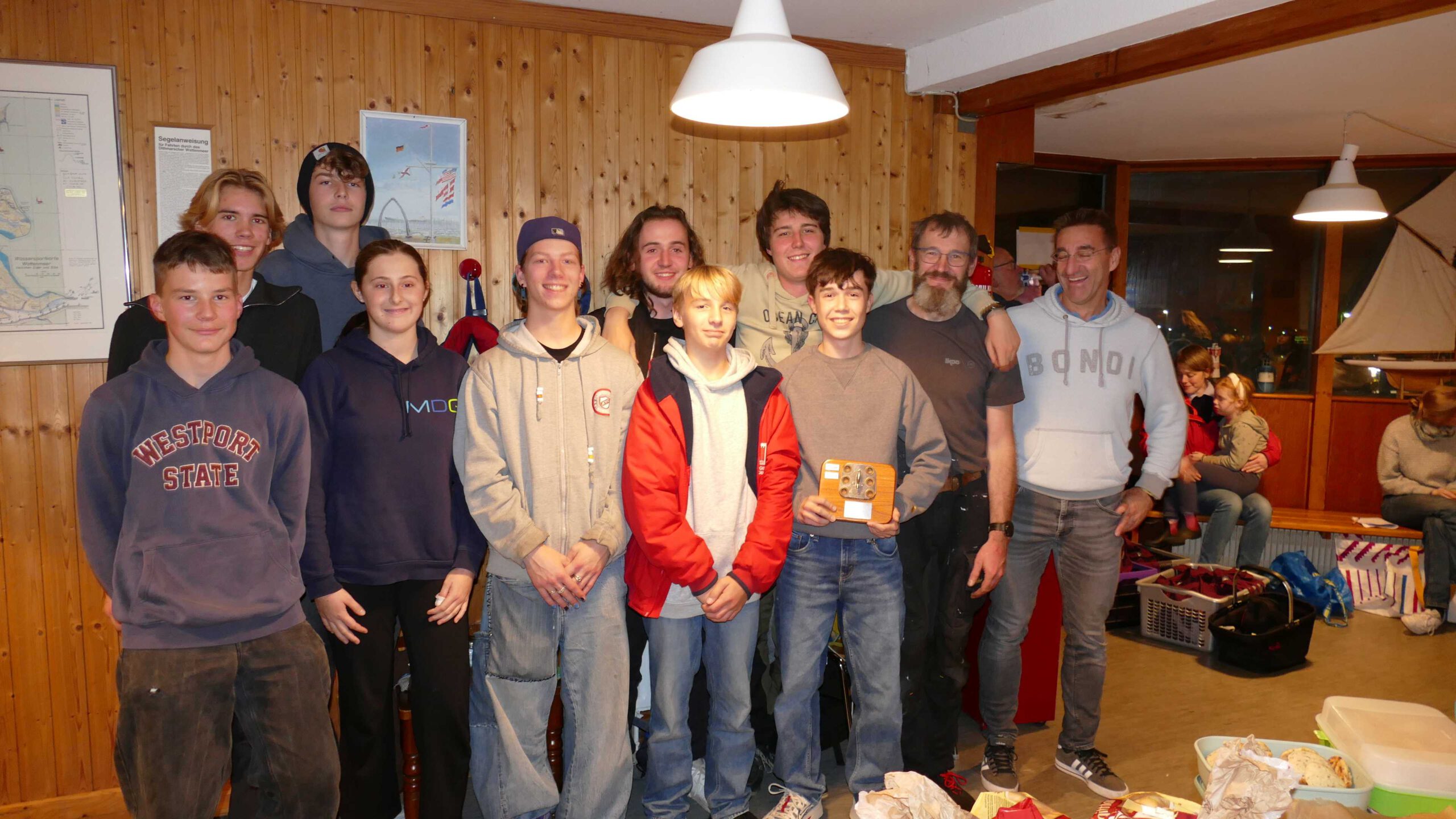 Auch die Halbmodelle wurden vergeben. Sie werden an die Kinder gegeben, die in der Saison den größten seglerischen Fortschritt gemacht haben. In der Gruppe C1 war das Lisa von Krahn aus dem SCU, die leider an dem Abend nicht selbst dabei sein konnte. In der Gruppe C2 hat Nomie Reimers aus dem SCOe das Halbmodell ersegelt und in der Gruppe B Matteo Laversanne aus dem SCU.